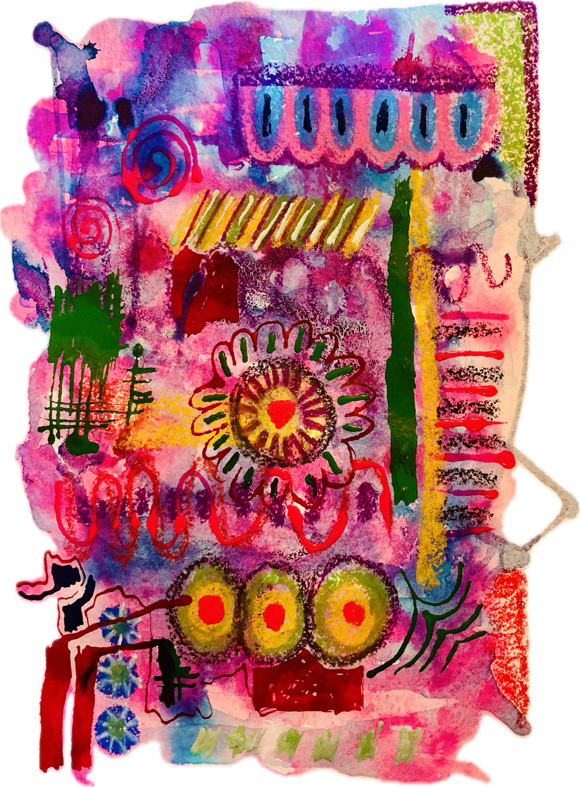 She primarily works with colour, mark making, collage and sewing, taking inspiration from travel and landscapes, people and places to visualise different narratives, creating bright beautiful textile images. Kates expectation is that her colourful art evokes a wide range of responses for the viewer, giving energy, optimism and excitement. She loves vibrant colourful packaging. Kate has a strong focus on reusing and recycling. Her usual mediums are paper, paints, acrylic sticks and sewing with paper and materials, creating bold, vivid images with texture. Procreate is used for digital manipulation and prints, when required, to captivate, enhance and dramatise imagery.